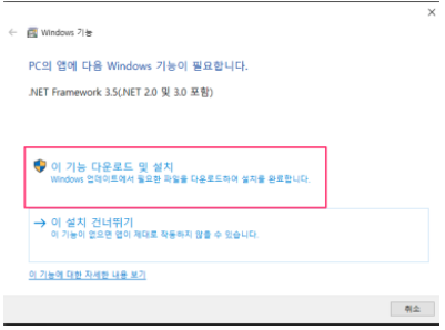 이 창은 뜰 수도 있고 안뜰 수 도 있습니다. 만약 뜨면 이 기능 다운로드 및 설치를 눌러주세요.