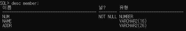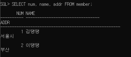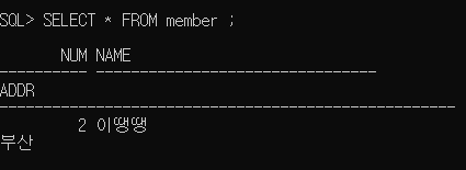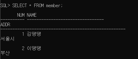 INSERT INTO member(num,name,addr) VALUES(1,'๊น๋ก๋ก','์์ธ์');