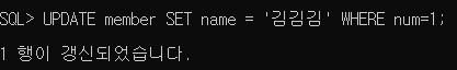 UPDATE member SET name = '๊น๊น๊น' WHERE num=1;