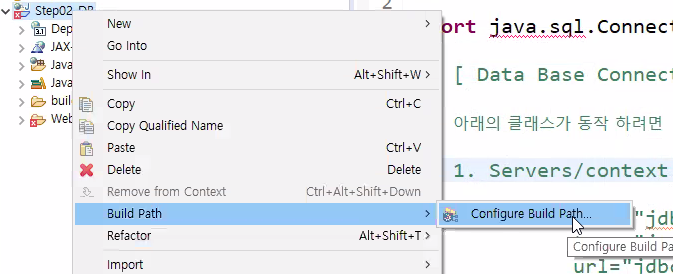 프로젝트에서 마우스 우클릭 > Build Path