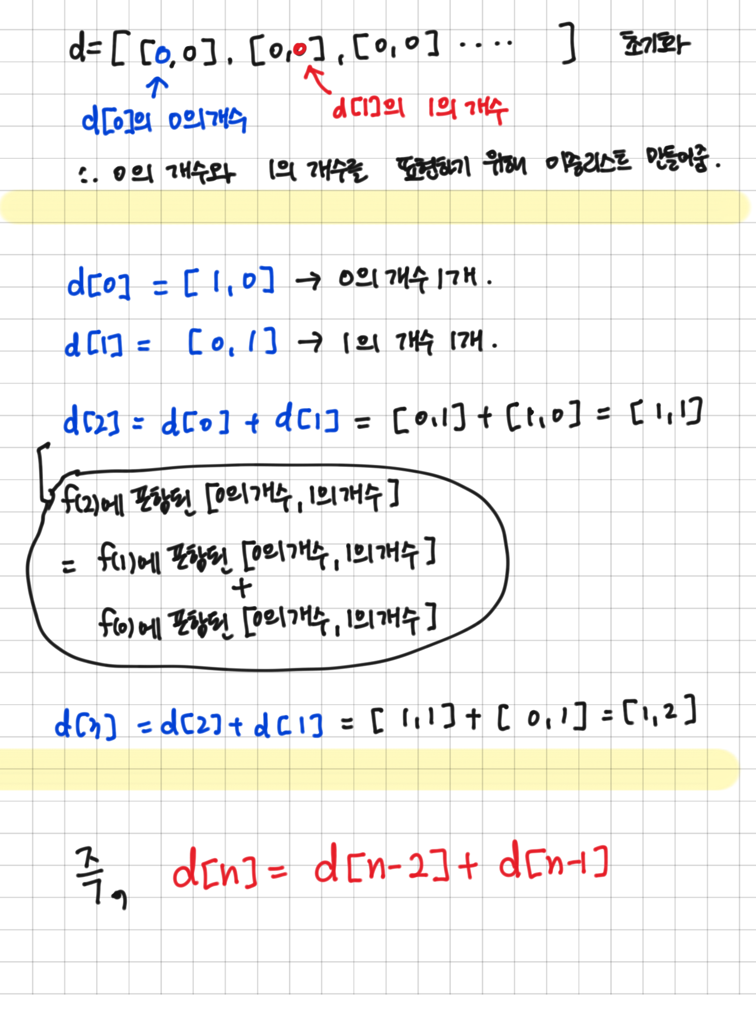 그러므로 d[2] = d[1] + d[0]이라고 할 수 있다.