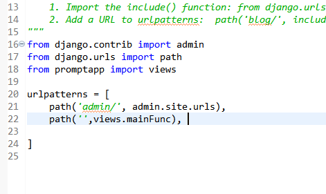 path('',views.mainFunc)는 아무 요청도 들어오지 않았을때 views에 있는 mainFunc가 실행된다는 뜻이다.