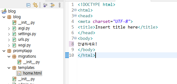 app안에 templates 폴더 생성 후 그 안에 html을 만들어준다.