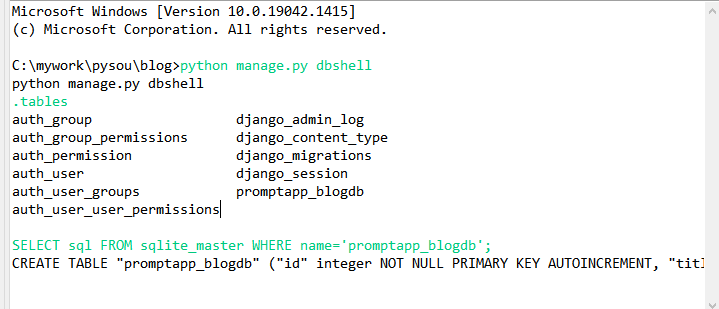 파일을 생성해주었으면 Migration을 DB에 적용해야한다. 위 명령문이 Migration을 DB에 적용하는 명령이다.