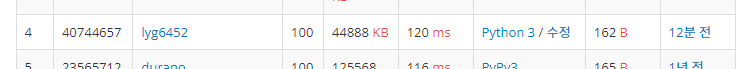 백준 숏코딩 4등에 등재되었다..!!!!! 대박 ㅠㅠㅠ 풀었는데 신박하게 푼거같아서 숏코딩 들어가봤더니 4등,,!!!! 감격스럽다..