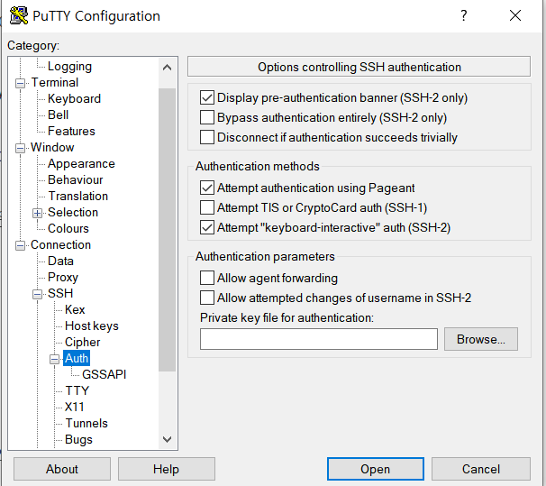 browse를 클릭하여 방금 만든 ppk파일을 불러와준다.