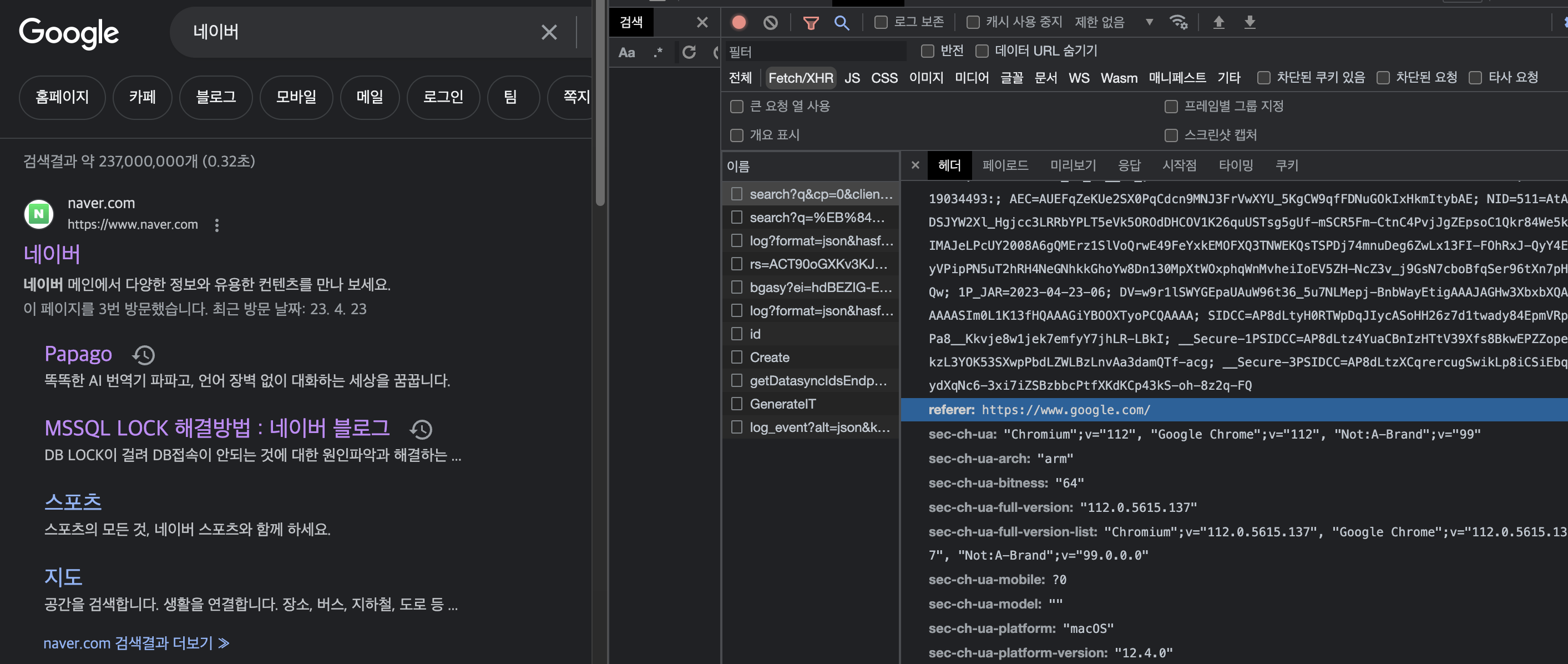 referer 은 네트워크 -> 헤더에서 확인 할 수 있다.