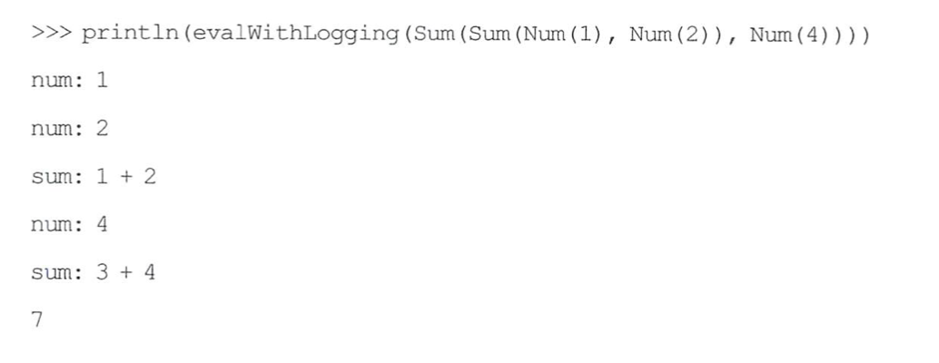 예제로 봤던 eval 함수에 로그를 추가하고 싶다면 각 분기를 블록으로 만들고 블록의 맨 마지막에 그 분기의 결과 값을 위치시키면 된다.