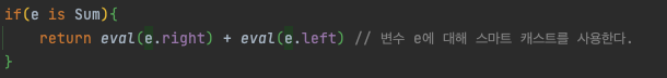 e.value // 이 식이 블록의 마지막 식이므로 e의 타입이 Num이면 e.value가 반환된다.