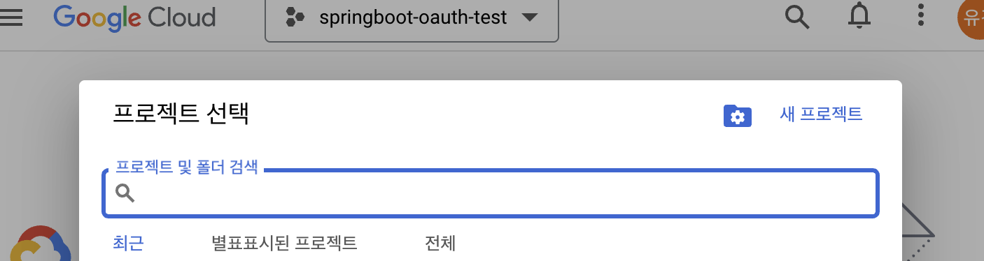 프로젝트 선택 창이 나오는데 여기서 새 프로젝트를 클릭해줍니다.