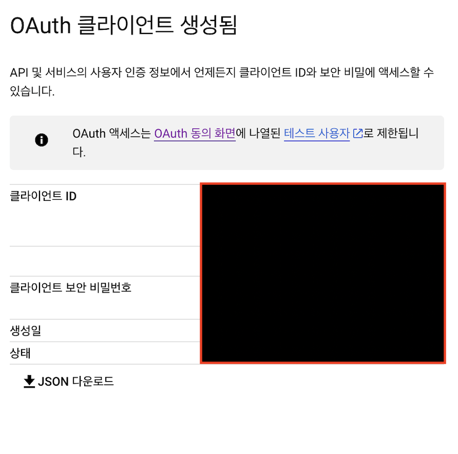 클라이언트 ID와 클라이언트 보안 비밀번호를 메모장에 저장해둡니다.